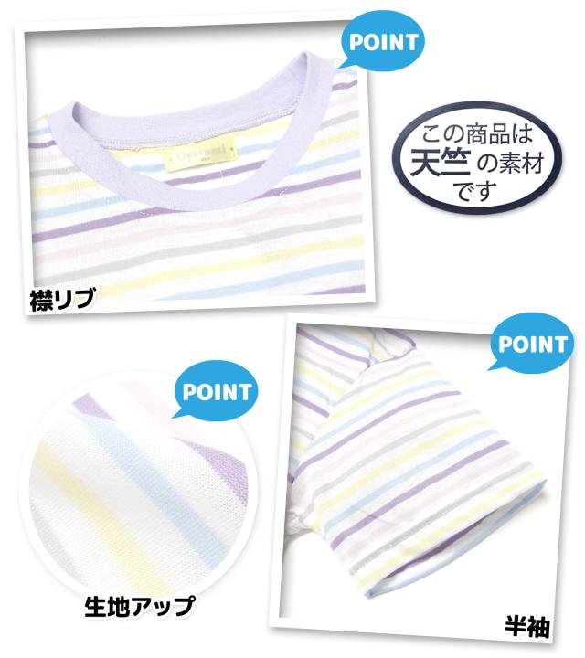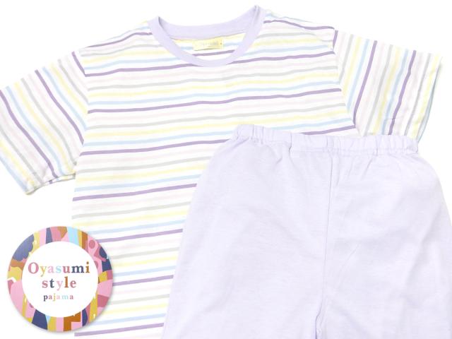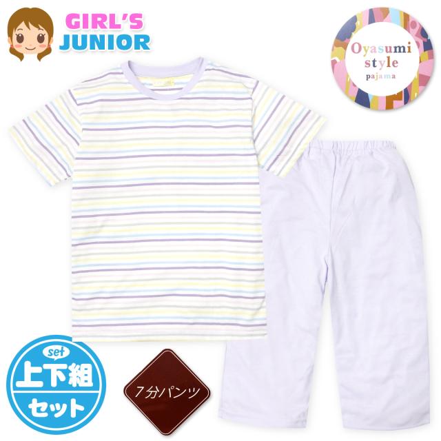 【送料無料】女児 ジュニア 天竺 半袖 パジャマ 上下組 7分丈パンツ マルチボーダー柄 綿混 薄手 子供服 女の子 140cm 150cm 160cm my-0103d-pp【メール便対応】