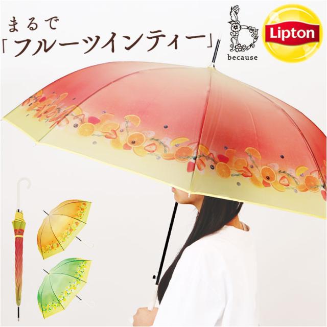because ビニール傘 ビコーズ B-552762 通販 長傘 ジャンプ傘 傘 雨傘 かさ カサ ビニール ジャンプ 58cm 58センチ Lipton リプトン フルーツインティー レディース おしゃれ リボン 女性 通勤 通学 大人 女子 レディース雨傘