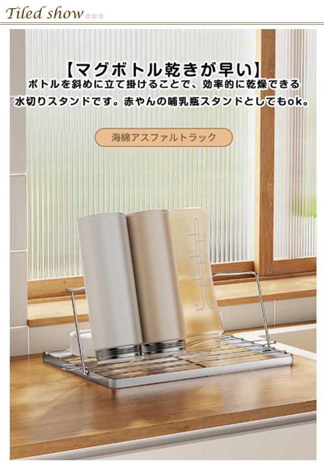 ステンレス スタンド ジャグボトルスタンド 水筒 ボトルスタンド 水切りラック 水切り コップスタンド 水切り 水筒たて 水筒置き場 水筒干し 水切りかご 哺乳瓶ラック コップ 収納 ボトルスタンド 水筒 乾かす ボトル 干す マグボトル 干し 滑り止めバー付
