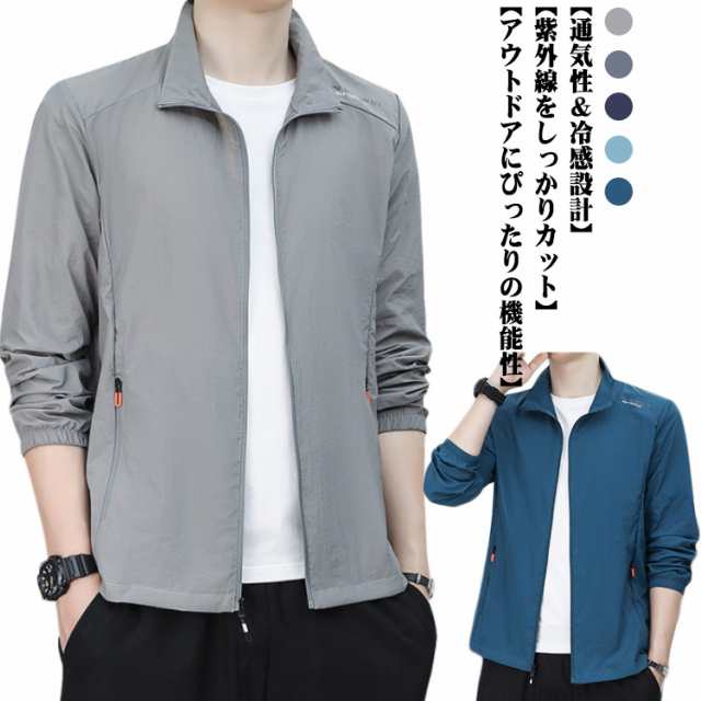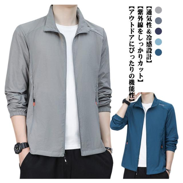 薄手 長袖 メンズ UVカットパーカー ラッシュガード 立ち襟 サマージャケット ライトアウター ジップパーカー 通気性 日焼け防止 釣り キャンプ サイクリング アウトドア スポーツ