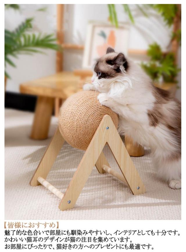| ・クルクル回る猫用爪研ぎ ・インテリアに馴染む天然素材 【高級感が溢れる天然木】柱には、高品質の無垢材を使用し、手作りで、表面に丈夫な麻縄をあしらっています。木の香りにより、猫本来の本能を自然に刺激します。 【高品質・高耐久性】力学的原理に基づいた安定なデザインは、大きな猫ちゃんが遊んでも揺れにくいです。 【皆様におすすめ】魅了的な色合いで部屋にも馴染みやすいし、インテリアとしても十分です。かわいい猫耳のデザインが猫の注目を集めています。お部屋にぴったりで、猫好きの方へのプレゼントにも最適です。 【ボールの全身は丈夫な麻縄で包まれる】猫ちゃん達は余裕に爪とぎができます。麻製は丈夫で長持ちで、ホコリが出にくく清潔です。 【家がボロボロになるのを防ぐ】猫と暮らしながら、家具の損傷は避けたい。 | |