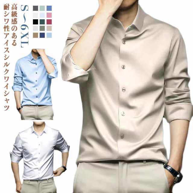 耐シワ性 Yシャツ 長袖 高級感 ノーアイロン 夏 春秋 ノーアイロン レギュラー メンズ 紳士服 おしゃれ 長袖シャツ 光沢感 アイスシルクシャツ 通勤 yシャツ 無地 シンプル 長袖シャツ トップス 大きいサイズ ゆったり ギフト