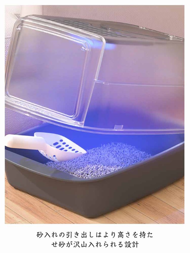| 上からも出られ 2ドア設計 砂入れの引き出しはより高さを持たせ砂が沢山入れられる設計 異臭を消す活性炭パック付き 接続部分がしっかりはまり、すぐに組み立てられます。 | |