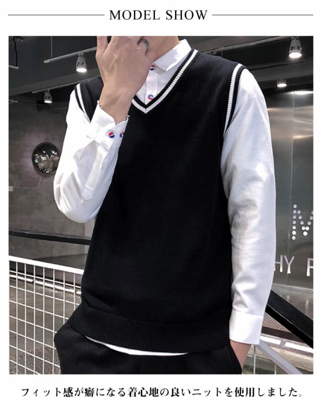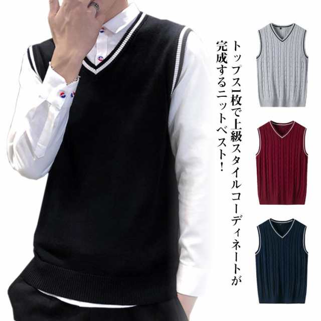ニットベスト ニットセーター Vネック ノースリーブ リブニット ベスト 大きいサイズ セーター メンズ ニットトップス 色切り替え インナー 重ね着 レイヤード カジュアル コーディネート 無地 定番 普段着 ビジネス 通勤 通学 春新作 送料無料