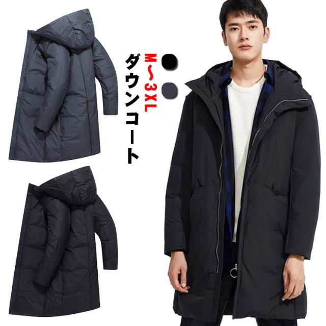 ダウンコート メンズ ロングダウン ダウンジャケット リアルダウン フード付 ビジネス カジュアル コート アウター メンズコート ダウンジャケット メンズ アウター ジャケット ロング ダウンコート 極暖 フード コート 防寒服 紳士 冬 ブラック グレー
