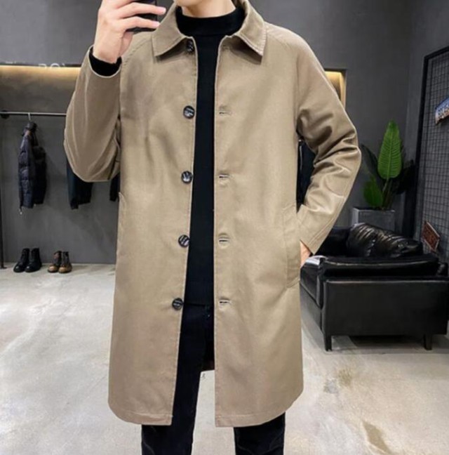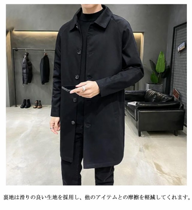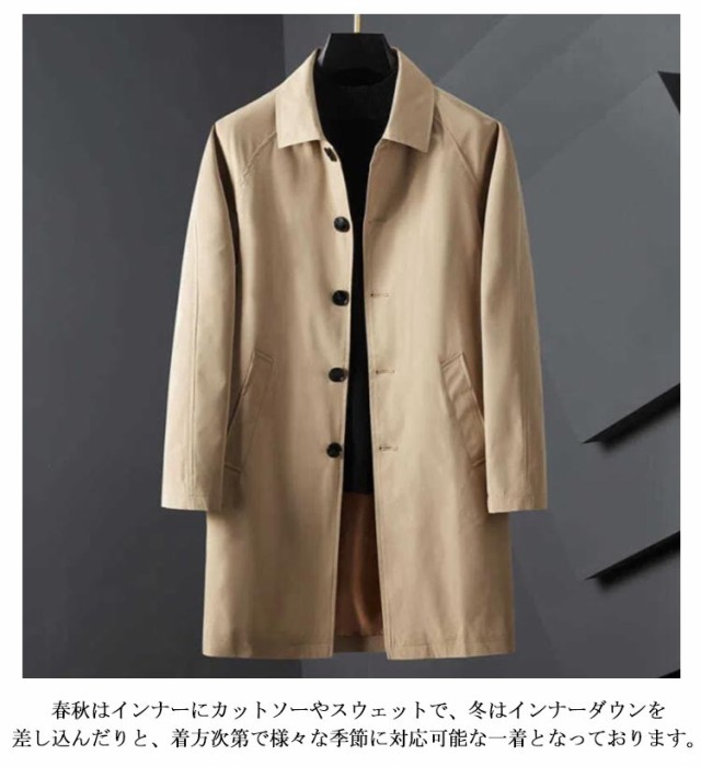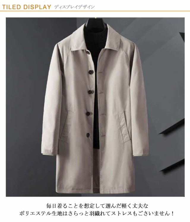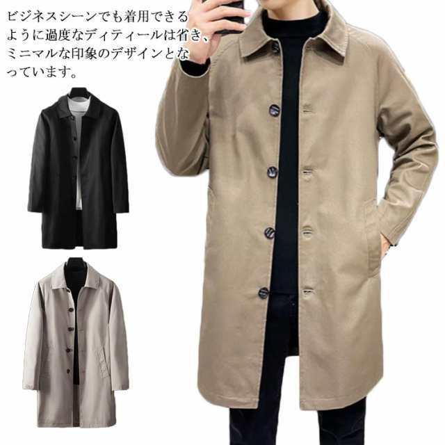 【送料無料】ステンカラーコート メンズ ビジネス コート ミドル丈 裏地付き 秋物 薄手 ゆったり 上品 トレンチ ライトアウター 通勤 オフィス カジュアル スッキリ 春 秋 冬 シンプル 大きいサイズ M L 2L XL 2XL 3XL 4XL