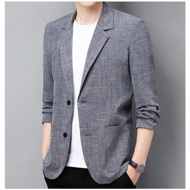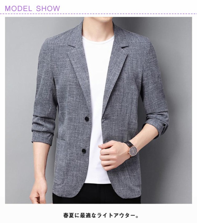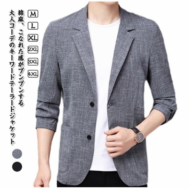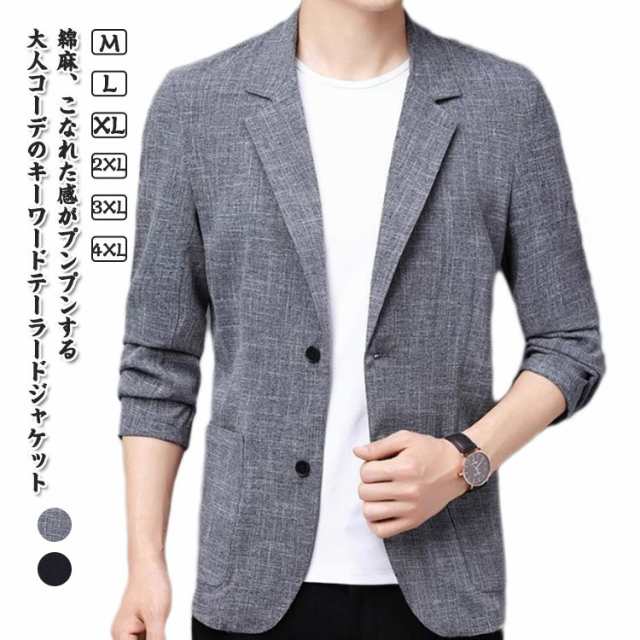ビジネス リネン ジャケット カジュアル テーラードジャケット L 長袖 春夏 ライトアウター サマージャケット サマーテーラード メンズ 大人 紳士服 ブラック グレー M リネン XL 2XL 3XL