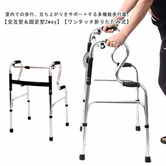 歩行器 高齢者 介護 セーフティーアームウォーカー 室内用 ワンタッチ 折りたたみ 8段階高さ調節 アルミ製 軽量 固定式 交互型 歩行器 立ち上がり補助 歩行補助器 歩行補助具 歩行補助 歩行訓練 コンパクト収納 耐荷重約180kg 敬老の日 プレゼント