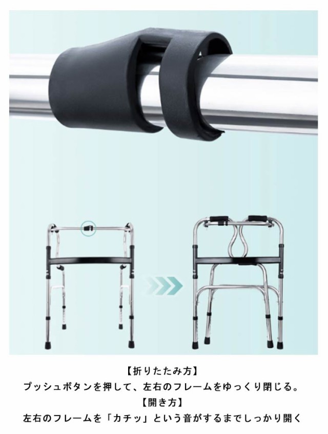 | 室内での歩行、立ち上がりをサポートする多機能歩行器。【交互型&固定型2way】【ワンタッチ折りたたみ式】 高さ最大8段階調節可能:身長・体勢に合わせて8段階まで調節が可能。ロックでしっかり固定できるから体重をかけても安心。 L字型フレーム:持ち方の幅が広がるL字型フレーム 軽量・丈夫なアルミ製(2.5kg):一人でも簡単に持ち運びができ、扱いやすい。 滑りにくいグリップ:グリップ部は独自の形状で滑りにくく、しっかり握れる軟質素材を使用。 丈夫な12mmパイプ:丈夫な12mmの太パイプを使用しています。 折畳み収納&組立簡単:上部にあり折畳みロックを押しただけで、簡単に折畳みすることが可能。また組立は道具不要、折り畳んだフレーム広げるだけで完成。 たとえばこんな方におすすめです。つたい歩きに不安を感じる方、両手でステッキを使用している方、脚のリハビリをしたい方 | |