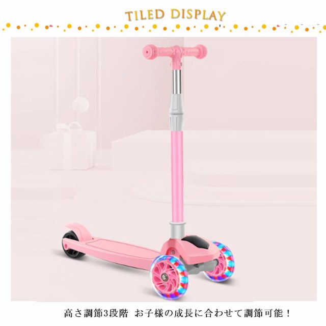 子供用 キックボード 3輪 折りたたみ式 光るタイヤ 座れる ブレーキ付き 高さ3段調整 ヘッドライト 2way 2way仕様 キックスケーター 三輪 三輪車 キックスクーター ピンク 乗用玩具 安定 クリスマス 誕生日 ギフト プレゼント 3歳 4歳 5歳
