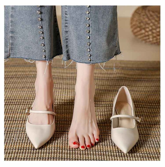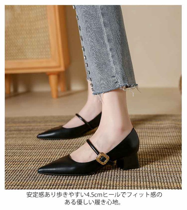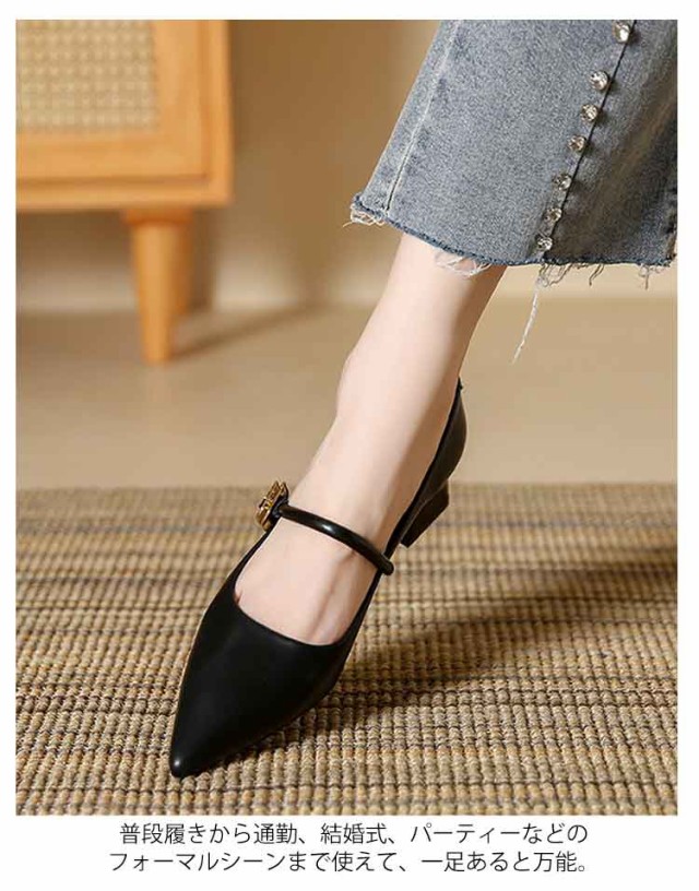 立ち仕事 走れる シューズ ぺたんこ 通勤パンプス レディース 歩きやすい パンプス PU 美脚 秋 ストラップ 4.5cm 痛くない ポインテッドトゥ 細足 結婚式 パーティー カジュアル キレイめ 春 夏 疲れない