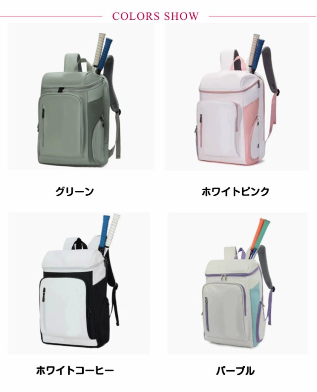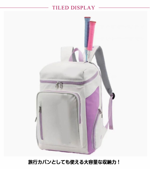 | 便利な大容量と多機能 ラケットバッグ。 旅行カバンとしても使える大容量な収納力! 拡張シューズポケット付き! ラケットも3本まで収納可能で、家族や友達でテニスを楽しむにはぴったりです。 | |