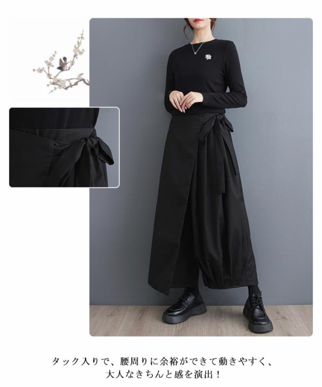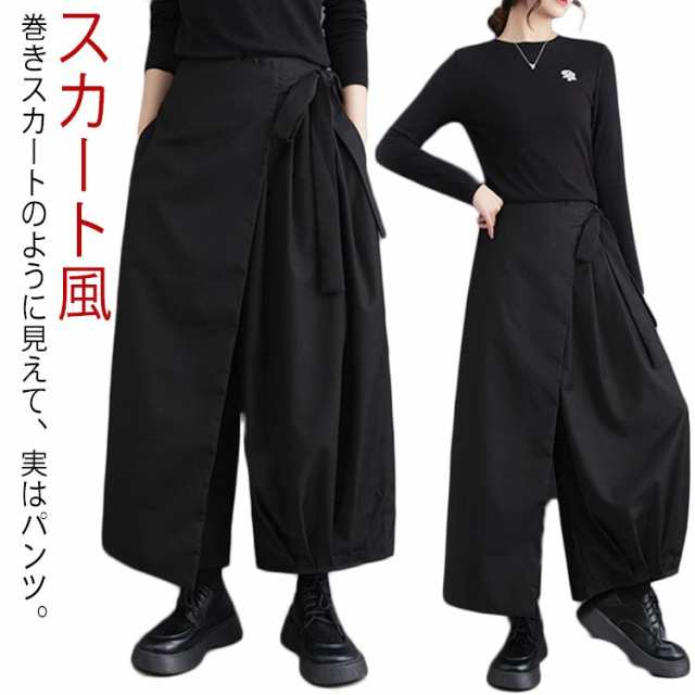 パンツ メンズ スカーチョ ガウチョパンツ ふんわり 巻きスカート風 ワイドパンツ スカート 体型カバー 裾タック ワイドパンツ ロングパンツ ワイドパンツ スカンツ カフェパンツ ユニセックス 黒 モード系 ダンス オシャレ 不規則