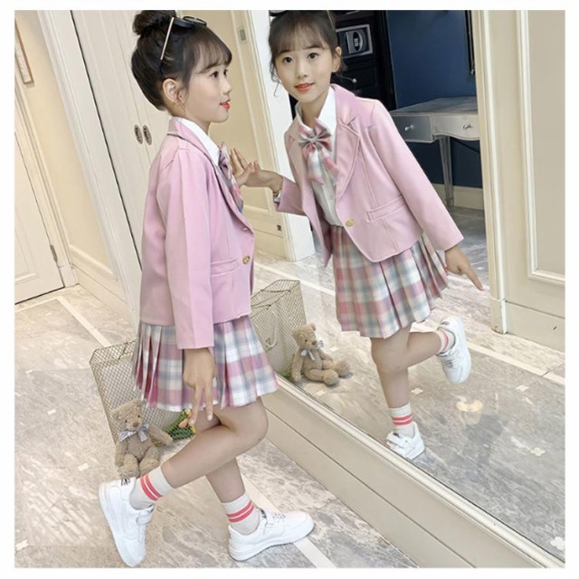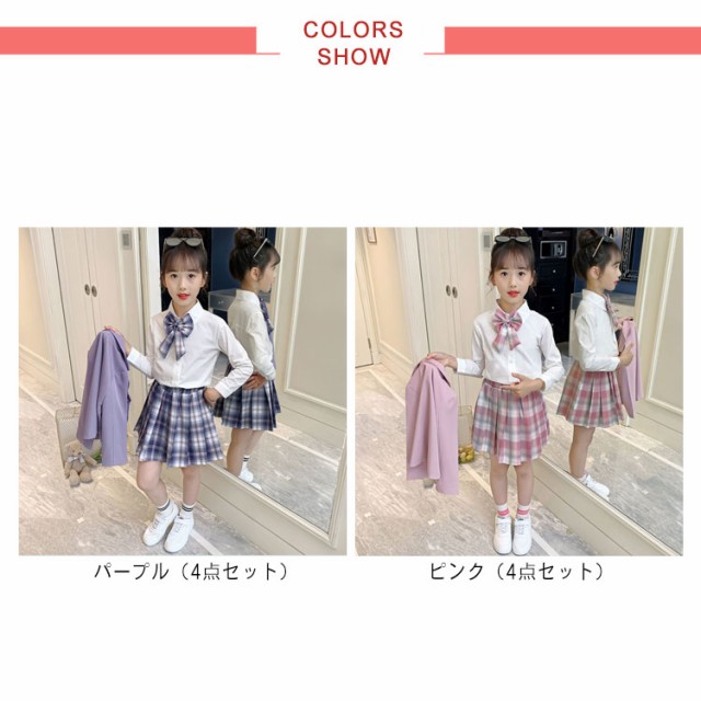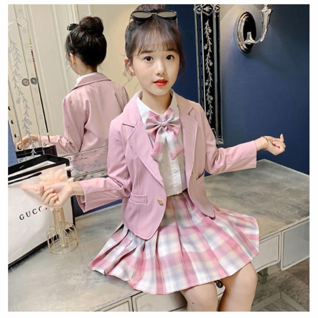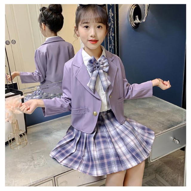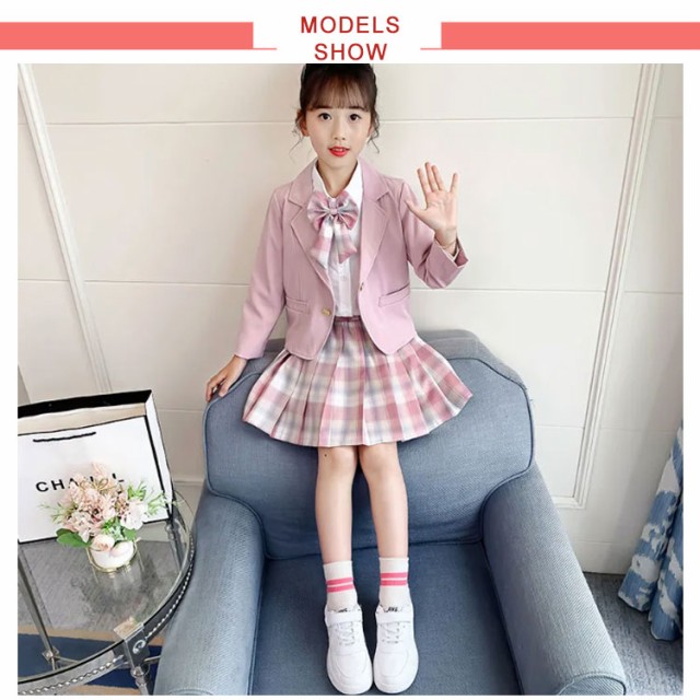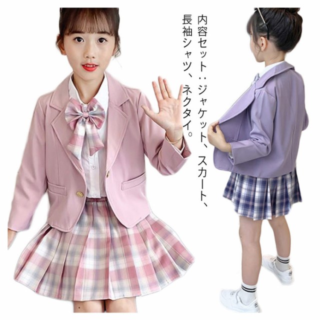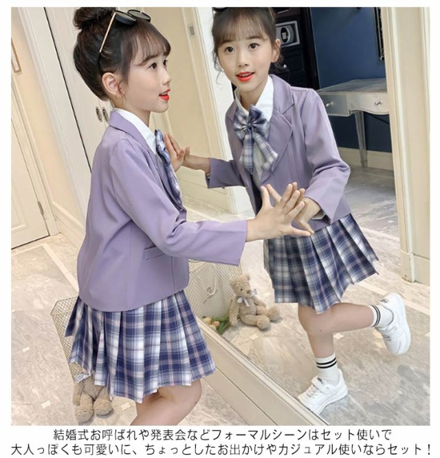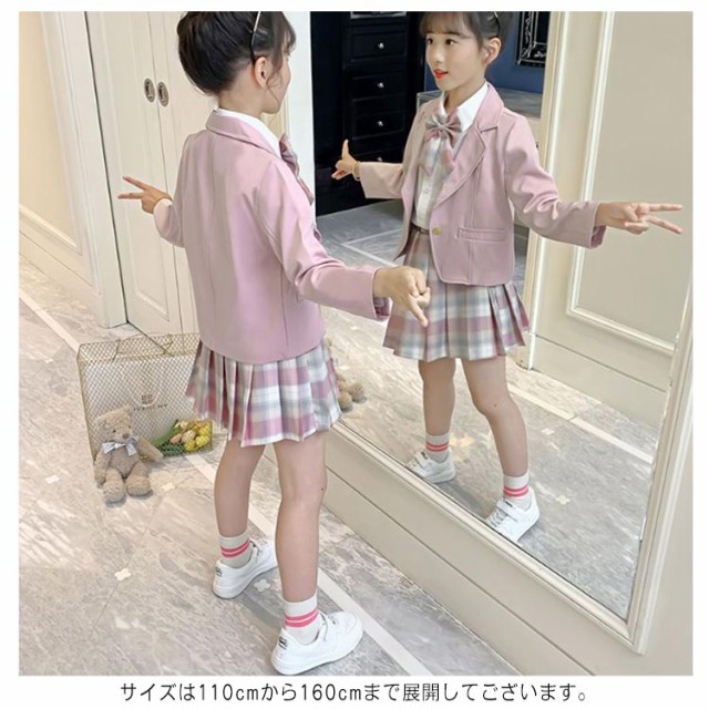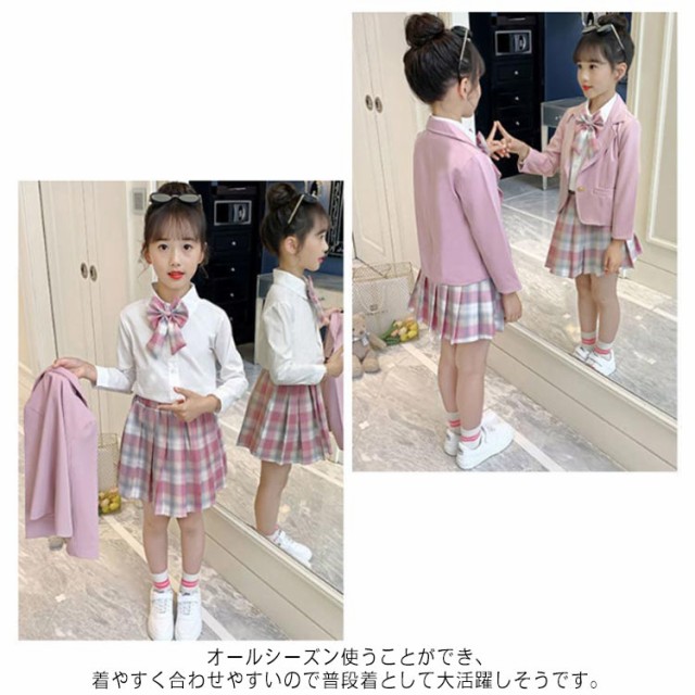 入学式 スーツ 女の子 卒園式 フォーマルスーツ 卒業式 子供服 スーツ ジャケット スカート 長袖シャツ 蝶ネクタイ 4点セット チェック柄 ジュニア服 七五三 発表会 カジュアル 普段着 110 120 130 140 150 160cm