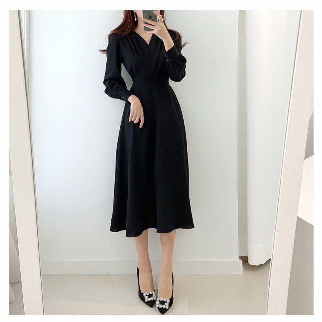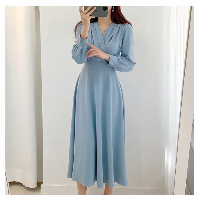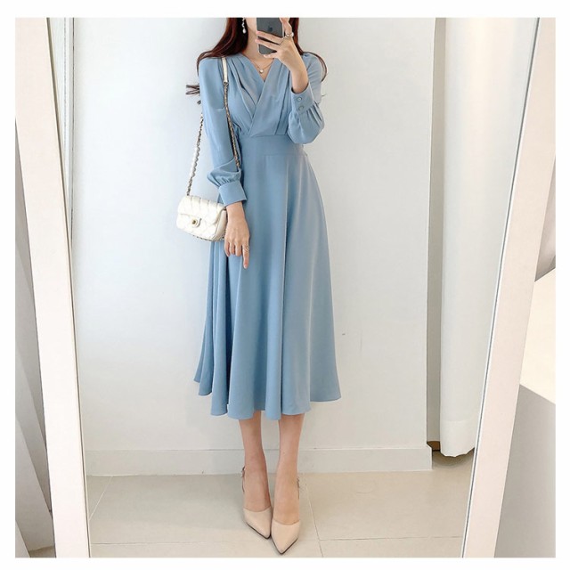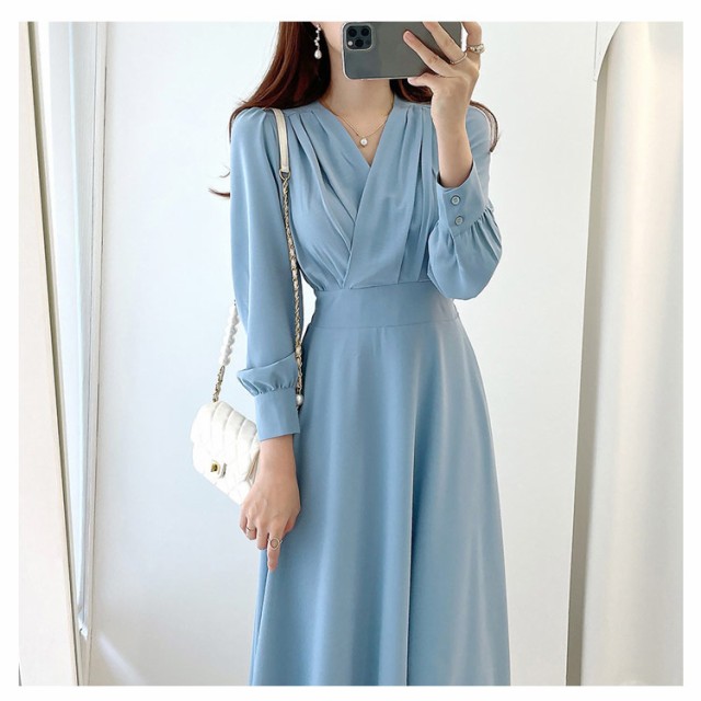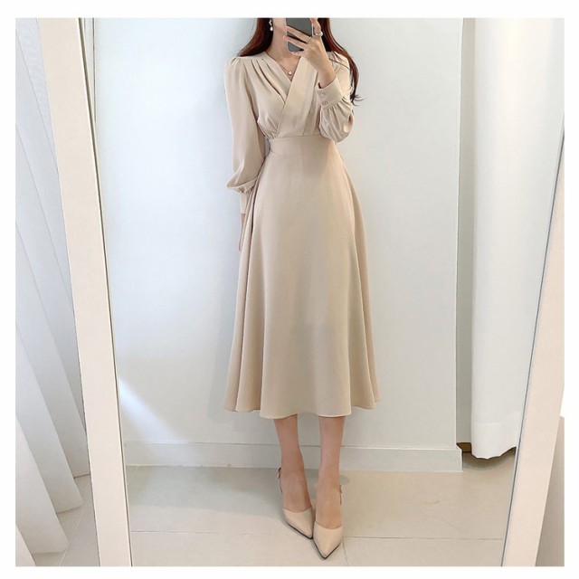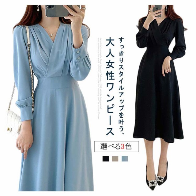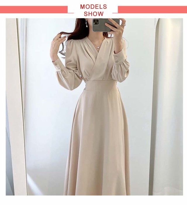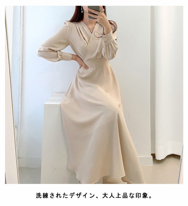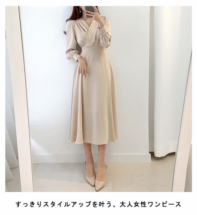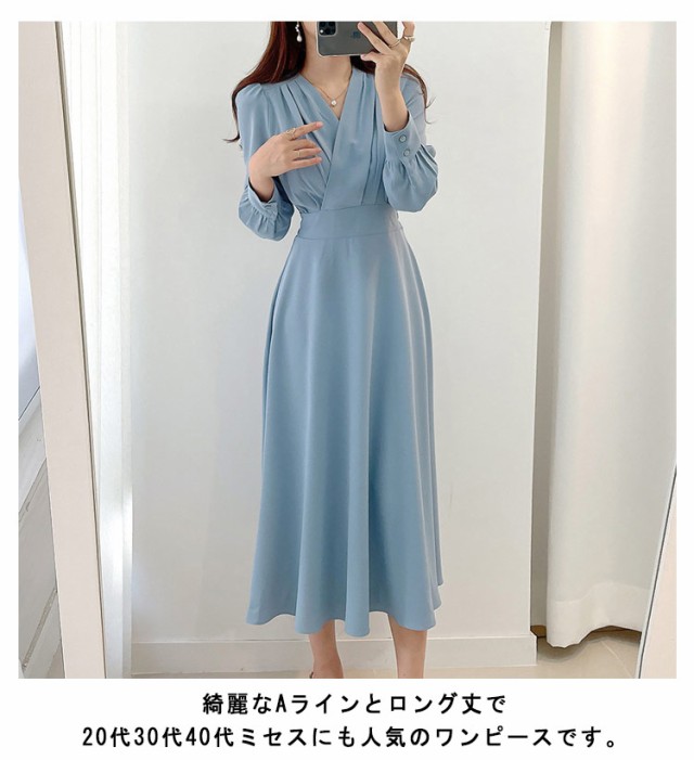 きれいめ 大人女性 長袖 レディース フォーマル 春 着?せ ロングワンピース マキシ丈 通勤 シャツワンピース Vネック 体型カバー 無地 シンプル 上品 可愛い ロングワ丈 入園式 卒業式 母親 結婚式 パーティードレス ギフト プレゼント