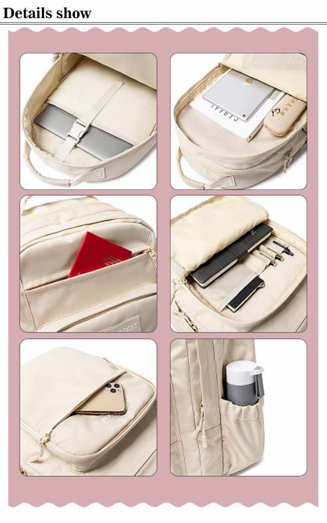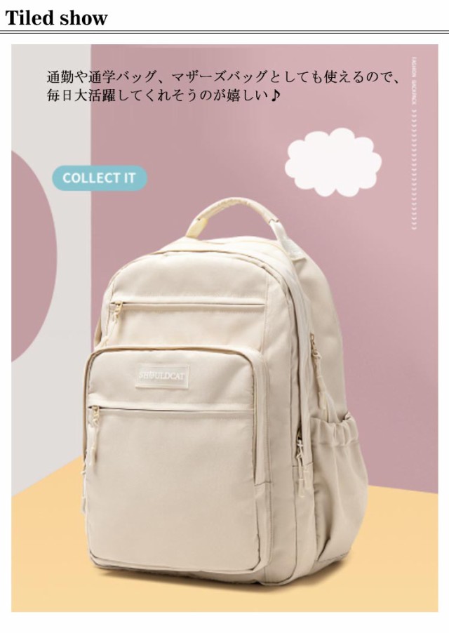 | 男女兼用リュックサック。 5層式の大容量構造。ポケットがたくさんあり仕分けに便利です。 メインルームは15.6インチまでのノートパソコンを収納できます。 サブポケットが大きくて仕切りもついて、A4サイズの書類などが余裕に入れます。 フロントにはたくさんの小さなポケットが付いており、小物をスッキリと整理整頓しながら収納スペースを確保できます。 機能的な高品質ポリエステル生地を採用して、折り畳んでも折り目が残る心配はありません。 撥水加工されているので汚れや水にも強く、使い勝手が良いのが魅力。 通勤や通学バッグ、マザーズバッグとしても使えるので、毎日大活躍してくれそうのが嬉しい♪ | |