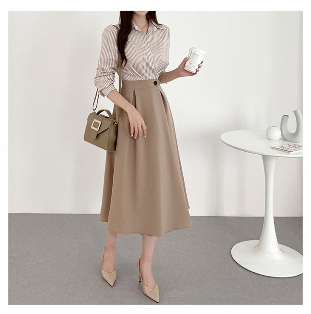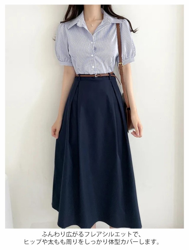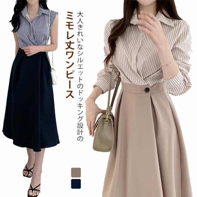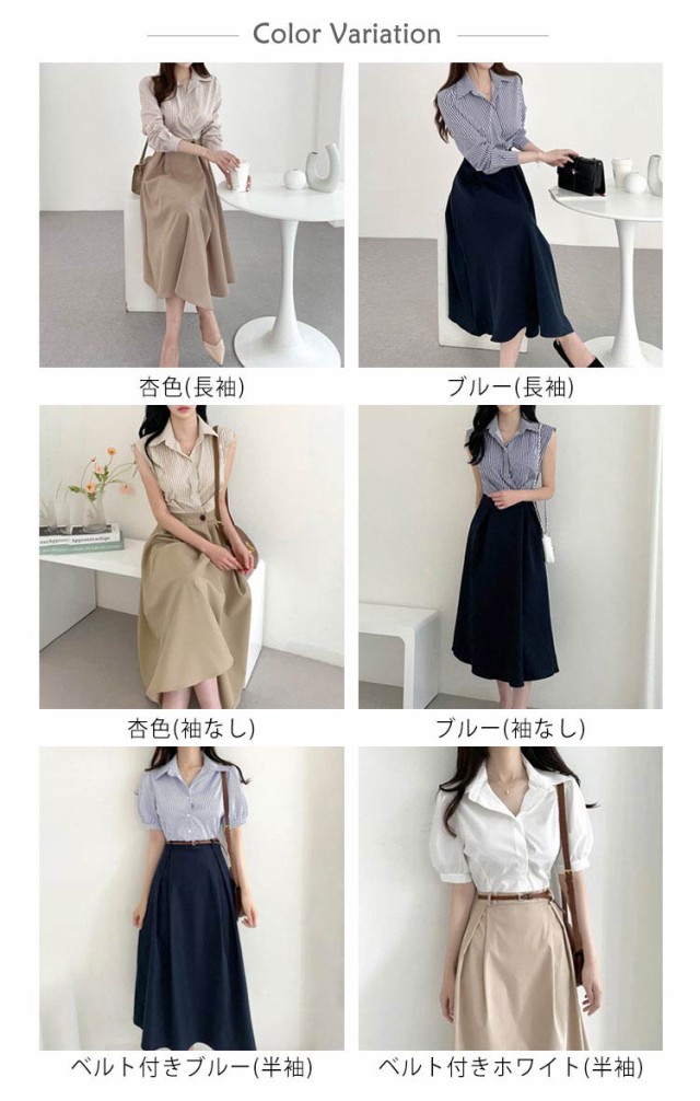 通勤 体型カバー レディース 入学式 シャツワンピース ロングワンピース シャツ襟 ミモレワンピース 秋 長袖/半袖/袖なし フレアシルエット 切り替え ワンピース キレイめ 卒業式 ウエストマーク 春 夏 ミモレ丈