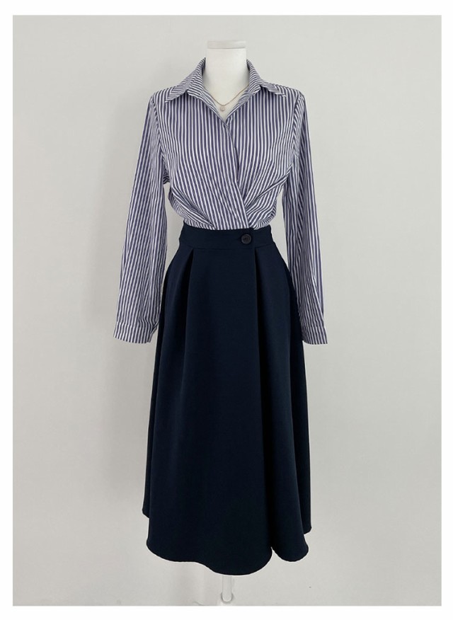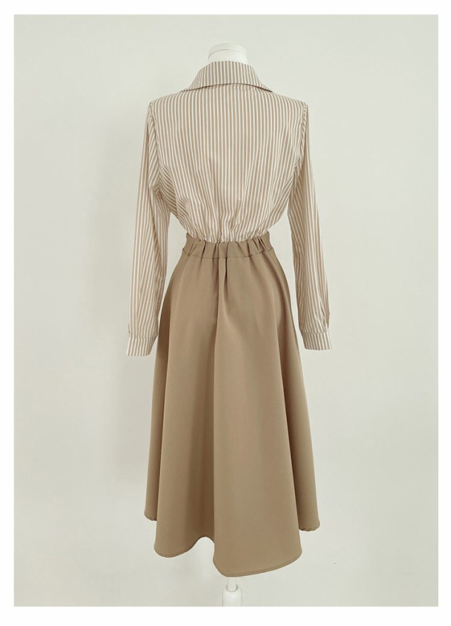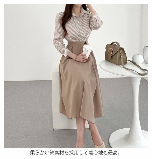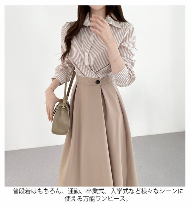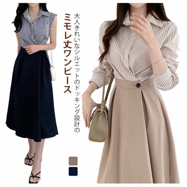 | 大人きれいなシルエットのドッキング設計のミモレ丈ワンピース。 ウエストマークで、大人っぽいシルエットを演出。 ふんわり広がるフレアシルエットで、ヒップや太もも周りをしっかり体型カバーします。 トップスはシャツ襟のように折り返すときちんと感のあるきれいめスタイル。 柔らかい綿素材を採用して着心地も最高。 普段着はもちろん、通勤、卒業式、入学式など様々なシーンに使える万能ワンピース。 | |