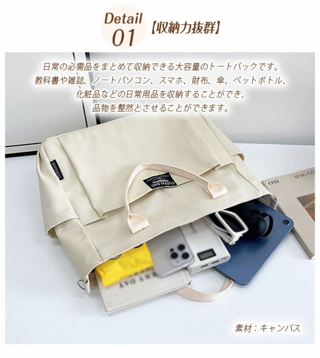 夏新作 トートバッグ キャンバス ショルダーバッグ レディース メンズ 大容量 無地 キャンパストート 帆布バッグ 斜めかけバッグ 通勤 通学 母の日