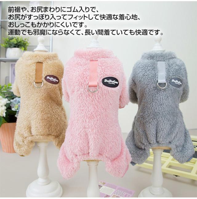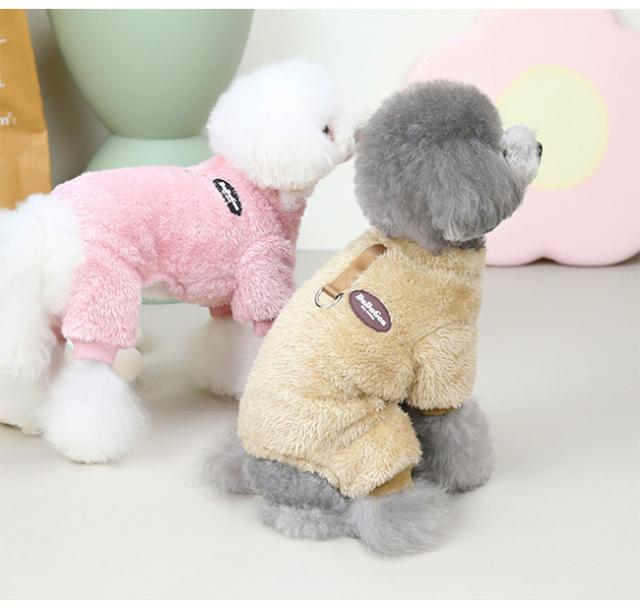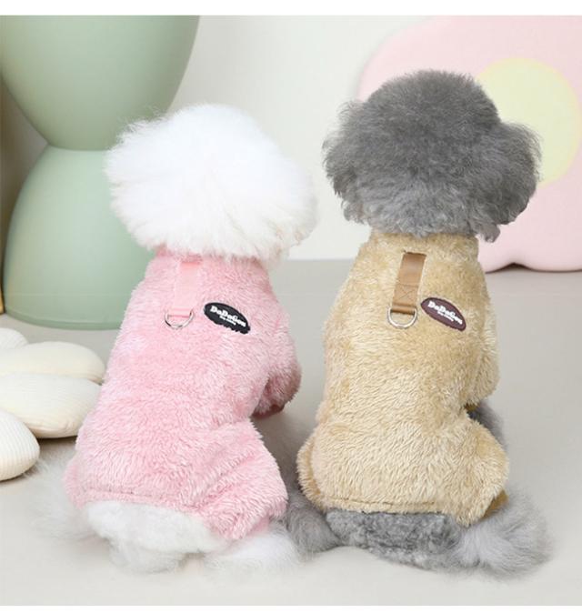 新作 犬の服 ペット服 ベルベット Dカン付き 犬 服 ロンパース 柔らかい 防寒 暖かい ふわふわ もこもこ つなぎ ドッグウェア フリース 犬服 小型犬 服 冬 ルームウェア お出かけ 散歩 抜け毛対策 小型犬 中型犬 犬服 猫服 秋 冬