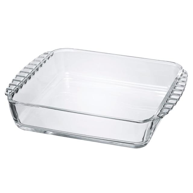 食器としてはもちろんのこと、トースター、オーブン、電子レンジ対応なので様々な調理シーンで活躍します食器洗い乾燥機にも対応しているのでお手入れも簡単凸凹した取っ手付きで厚手のミトンでも持ちやすい角型の耐熱ガラ ス皿です