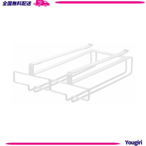 山崎実業(Yamazaki) 戸棚下 ワイングラスハンガー ダブル ホワイト 約W22×D26×H7cm タワー tower 穴あけ・ネジ止め不要 キッチン 吊下