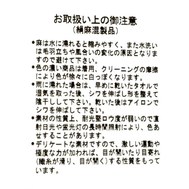 ■素材:素材 | 綿:83%、麻:17% 透け感 | なし 伸縮性 | 若干あり 原産国 | 中国 家庭洗濯 | 手洗い可 ポケット | あり