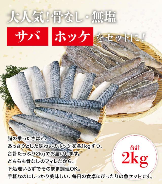 サバ&ホッケ 骨なし 無塩 セット 1kg×2 合計2kg サバ 鯖 ほっけ 骨取り