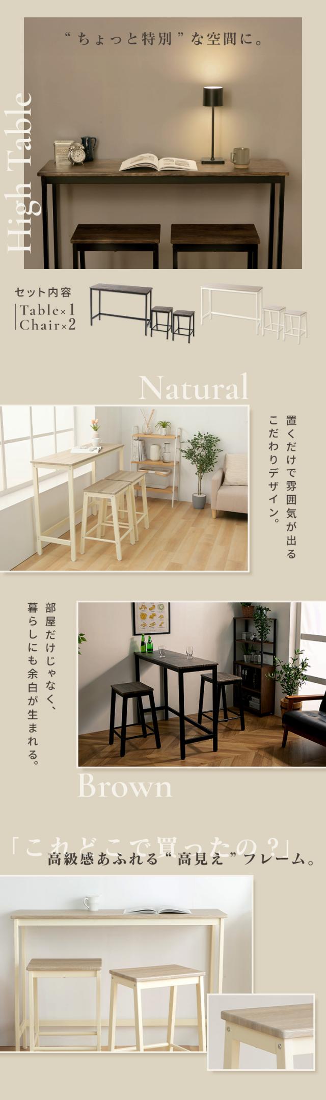テーブルセット 3点セット バーカウンター ハイテーブル シンプル ハイテーブル3点セット AS-V120HT(BR/NA) KOEKI コンパクトサイズ ハイテーブル バーカウンター 組立式 シンプルデザイン 3点セット ヴィンテージ風 マルチテーブル カウンターテーブル バーテーブル 送料無料