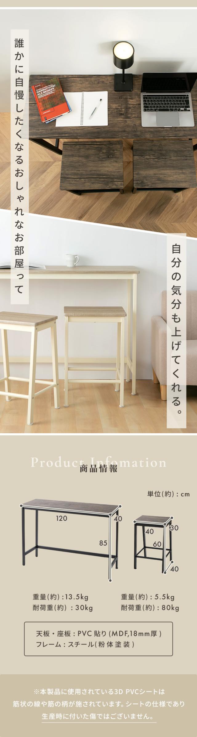 (検索用:コンパクトサイズ ハイテーブル バーカウンター 組立式 シンプルデザイン 3点セット ヴィンテージ風 マルチテーブル カウンターテーブル バーテーブル 4933178232248 4933178232231)