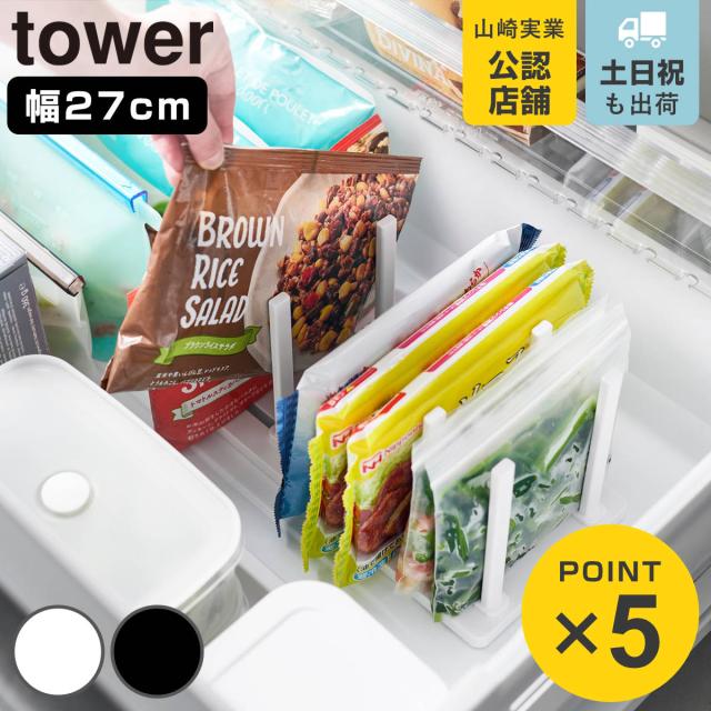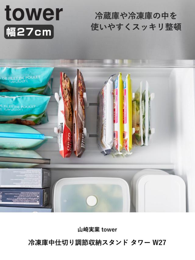 山崎実業 tower 冷凍庫中仕切り調節収納スタンド タワー W27 ( 4903208101028 タワーシリーズ 収納スタンド 冷凍庫 仕切り 調節可能 冷凍庫中 仕切りスタンド 収納 スタンド 冷蔵庫収納 冷凍庫用仕切り 冷凍庫収納 冷蔵庫 )