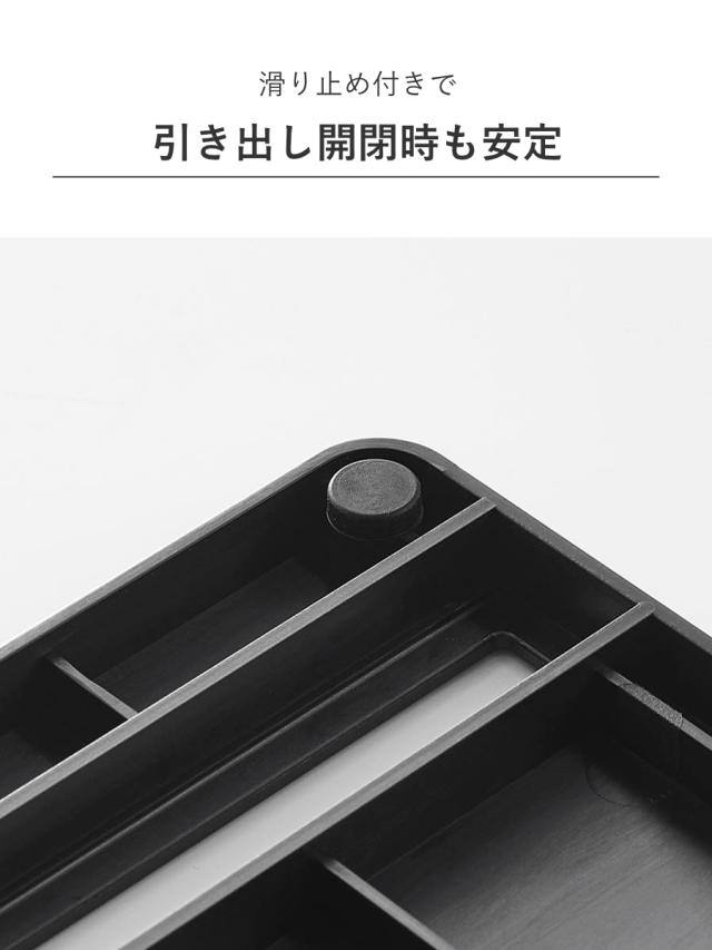 製品の裏面には滑り止めが付いているので、引き出しの開閉時にずれにくく安定します。