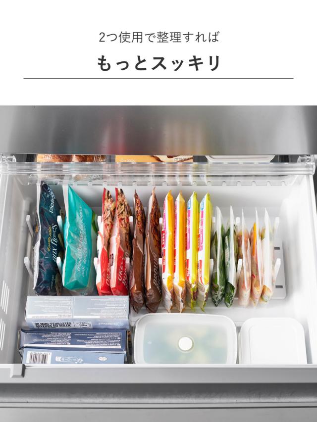 冷凍庫の食品を立てて整理できる冷凍庫中収納スタンドです。1つ1つ立てて収納することで使いたいものをサッと取り出しやすくなります。
