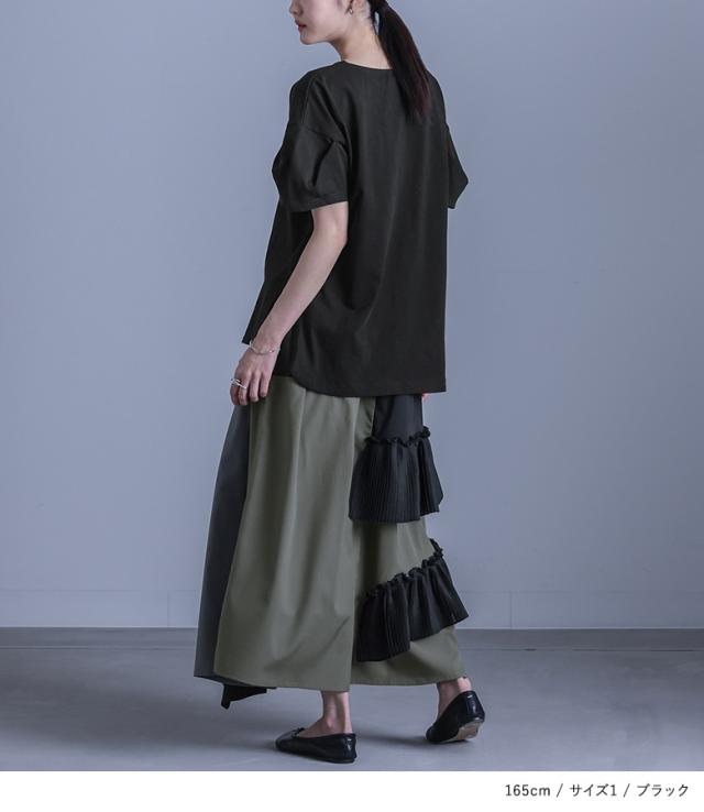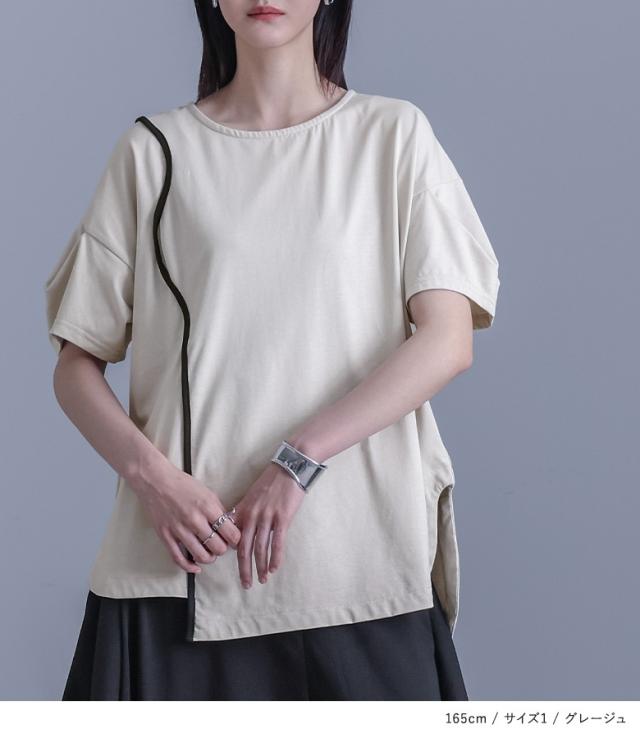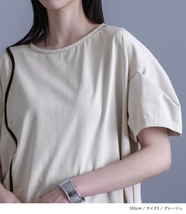 カットソー レディース トップス 半袖 Tシャツ 綿100% クルーネック 配色 カーブライン 袖タック デザインT 春 夏 【TP】 デザインTシャツ プルオーバー Uネック 袖コンシャス ミディ丈 ミドル丈 チュニック丈 タック スリット 無地 コットン100% レイヤード 重ね着 おうちで洗える カジュアル シンプル モード マニッシュ キレカジ フェミニン ゆったり ゆる 楽ちん お尻が隠れる 二の腕カバー Sサイズ Mサイズ Lサイズ LLサイズ 3Lサイズ XLサイズ ぽっちゃり 体型カバー 大きいサイズ プラスサイズ 10代 20代 30代 40代 50代 60代 女子会 オフィス 通勤 通学 お買い物 お出掛け 旅行 リゾート レジャー おしゃれ お洒落 トレンド 流行 kOhAKU コハク 大人女子 大人可愛い お洒落可愛い 大人カジュアル ラフ スタイリッシュ 洗練 エッジィ 上品 きれいめ かっこいい osharewalker オシャレウォーカー おしゃれうぉーかー ベージュ グレージュ ブラック 黒 バイカラー[ID]12tn0xr