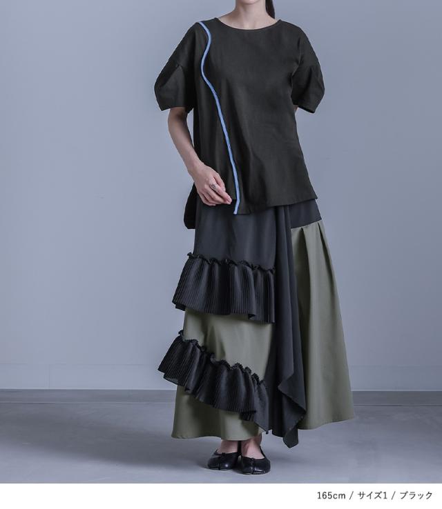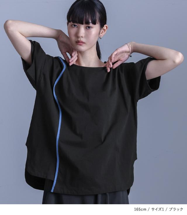 ■デザイン 配色のカーブラインがアクセントになったTシャツは、さりげない個性を演出。袖にはタックを施し、立体感のあるシルエットで程よくモードな印象に。両脇のカーブスリットや脱いだときにも見える衿ぐり裏の配色など、細部までこだわったデザインが魅力です。 ■コーディネート アシンメトリースカートなどのデザインボトムと合わせれば、Tシャツながら存在感のある洗練されたスタイリングに仕上がります。テーパードパンツやストレートデニムと合わせれば、カジュアルながら洗練された印象に。 ■素材 本体にはコットン100%のカットソー生地を使用。しっかりとした程よい厚みがあり、透けにくく快適な着心地を実現。肌触りも柔らかく、デイリー使いにぴったりな素材感です。 |