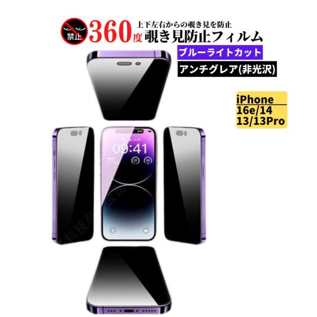 iPhone 16e 14 13 13Pro 360度 覗き見防止 ブルーライトカット アンチグレア 強化ガラス フィルム 保護フィルム ガラスフィルム 非光沢 マット 反射防止 指紋防止 硬度9H 全面保護 iPhone 14 Phone13 iPhone 13 Pro