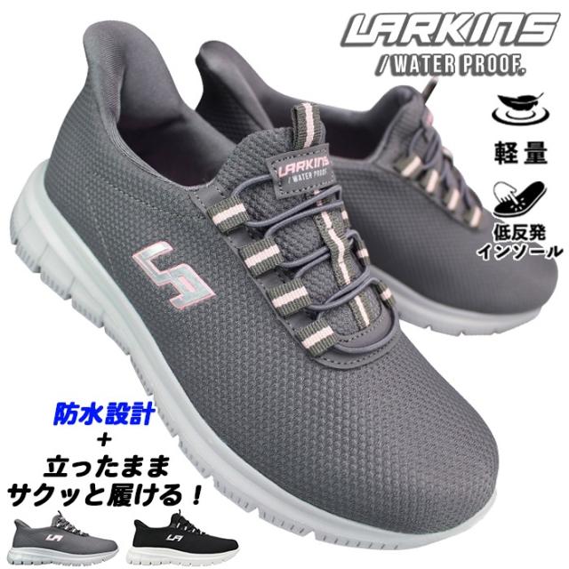 ラーキンス LARKINS 防水ハンズフリーシューズ L303 グレー ブラック 22.5cm〜24.5cm レディース スリッポン スリップインシューズ スニーカー カジュアルシューズ 運動靴 防水靴 軽量 ローカット 手を使わずに履ける靴 スリップイン