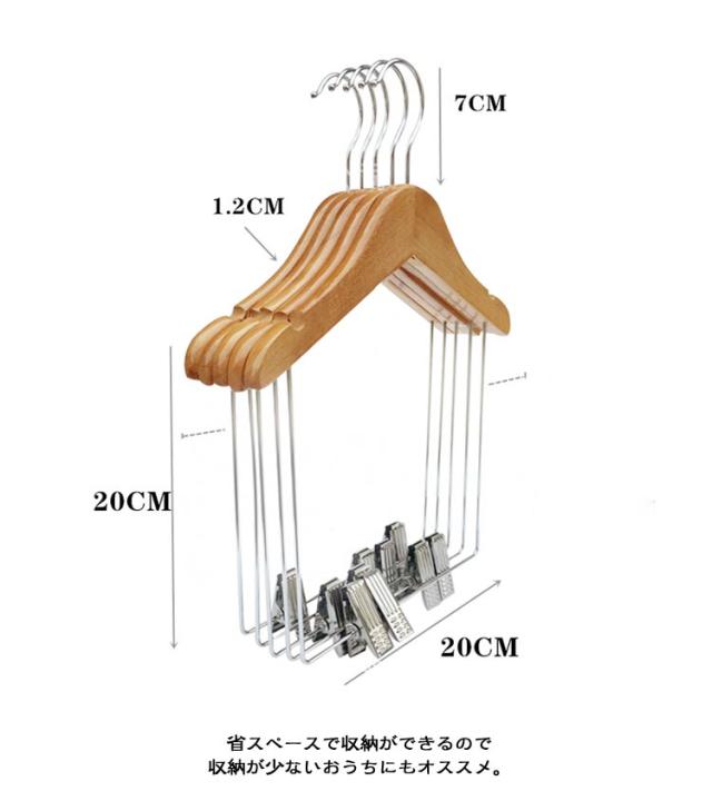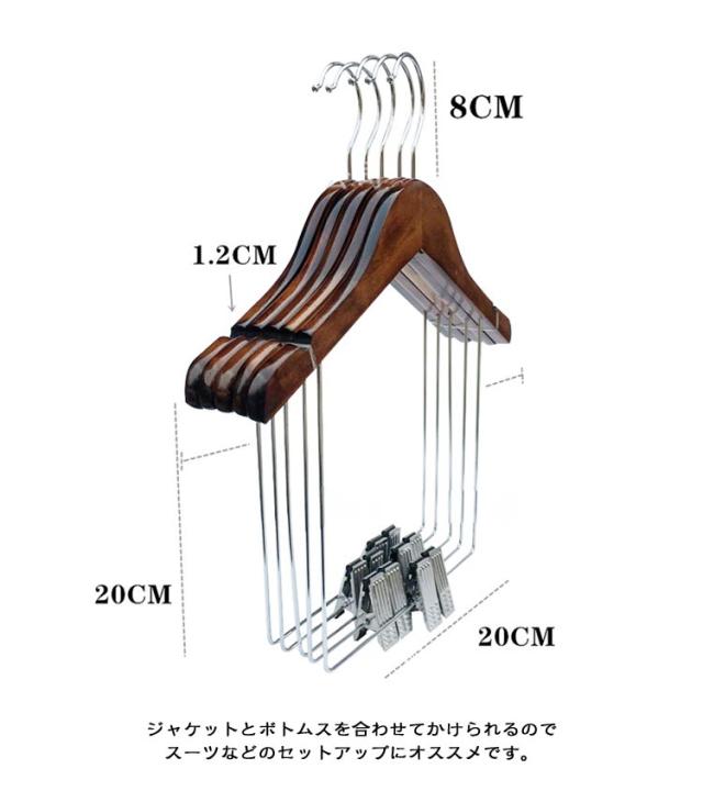【5本セット】木製 セットアップハンガー 洋服ハンガー 子供 大人 スーツハンガー セットアップ用 上下セット ハンガー パンツ スカート ボトムス スーツ ジャケット 同時収納 ハンガー クリップ付き 型崩れしない 収納ハンガー 衣類ハンガー キッズ用 木製ハンガー