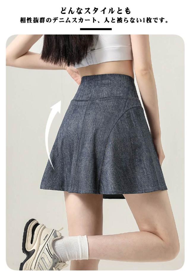 テニススカート デニムスカート ショートパンツ一体型スカート ミニスカート ゴルフウェア ゴルフスカート フレアスカート Aライン 伸縮性 ストレッチ スポーツウェア インナー付き ポケット付き 練習用 運動用