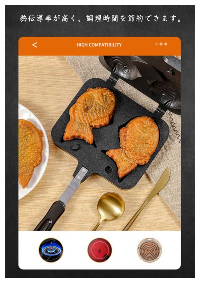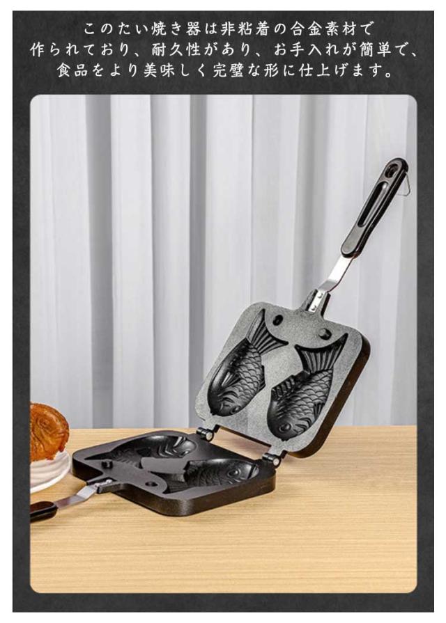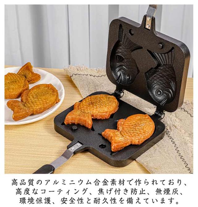 たいやき器 直火 鯛焼き器 たい焼きメーカー フライパン 鯛焼きツール ふっ素加工 和菓子用器具 家庭用 手作り 非粘着 手触り良い 焦げつかない 健康的 お手入れ簡単 便利 人間工学 自宅