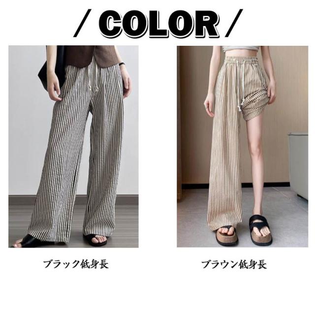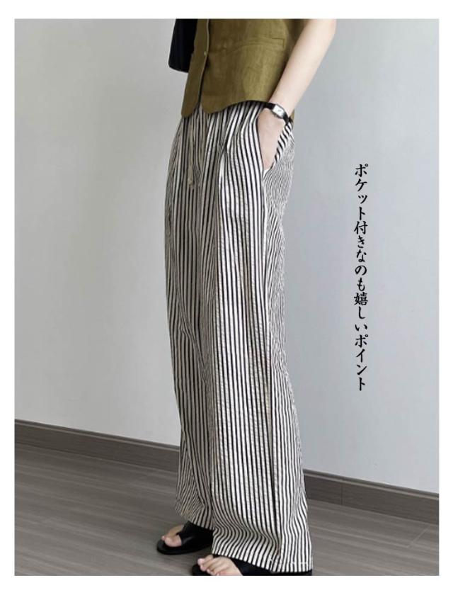 ワイドパンツ 接触冷感 ストライプパンツ レディース 涼しい 冷感 ストライプ ワイド パンツ 夏 ウエストゴム イージーパンツ 低身長 高身長 夏用 ボトムス きれいめ ゆったり 大きいサイズ 体型カバー ストレートパンツ リラックスパンツ 春夏