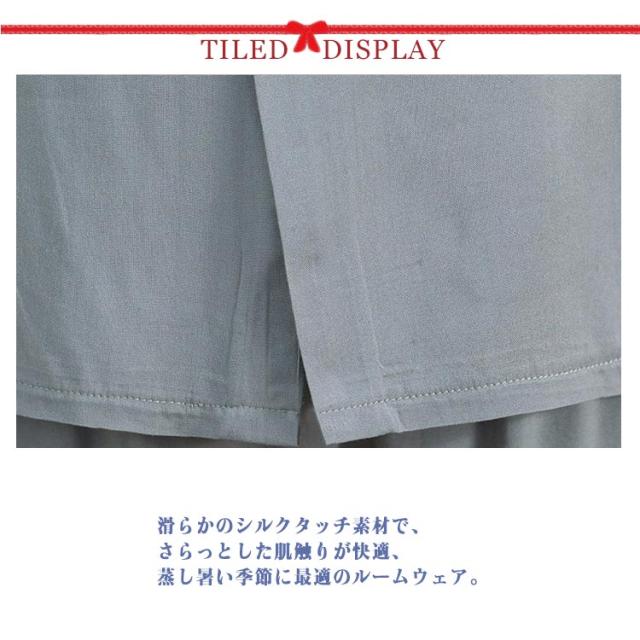 | さわった瞬間ひんやり涼しいパジャマ。 滑らかのシルクタッチ素材で、さらっとした肌触りが快適、蒸し暑い季節に最適のルームウェア。 軽くて風通しの良いパジャマ、汗をかく夏の時期にぴったり。 吸湿性と通気性、汗をかいてもサラッとしていて快適。 左胸には便利なポケット付きで、タバコなど小物を入れるのに便利。 パンツのウエストは総ゴム。両サイドにポケット付きでちょっとした外出やランニング・ウォーキング時にも便利! | |