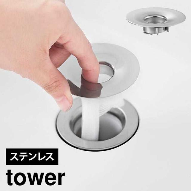 洗面排水口ゴミ受けネットホルダー 山崎実業 tower タワー 1681 排水口カバー 洗面所 ゴミ受け ステンレス 小さい ネットホルダー 排水口ホルダー 洗面台 排水溝カバー 髪の毛 ゴミ キャッチ ネット 網 簡単取り付け 掃除 ヘアキャッチャー 衛生的 錆びにくい 清潔 シルバー
