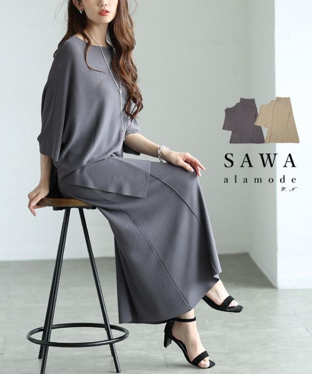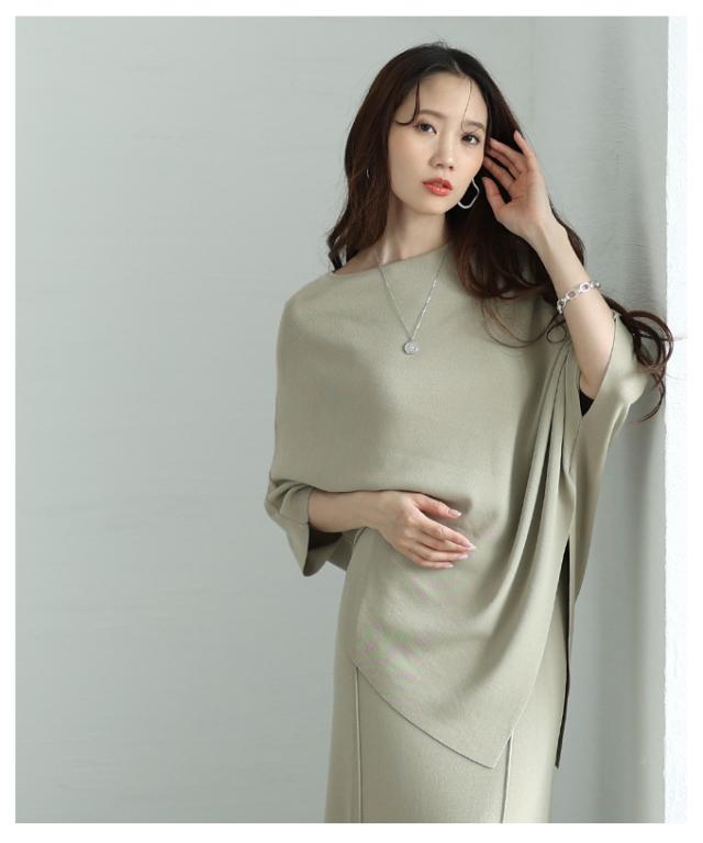 冬新作 ヒップまで隠せる美バランスアシンメトリーニットセットアップ レディース ファッション セットアップ 2点 夏 夏服 大人可愛い 20代 30代 40代 レディースファッション カジュアル 体型カバー おしゃれ きれいめ ママ サワアラモード sawaalamode mode-9959