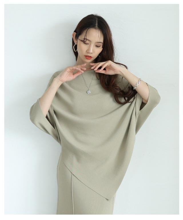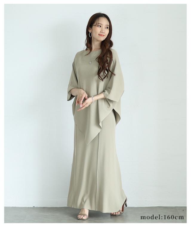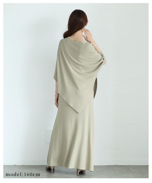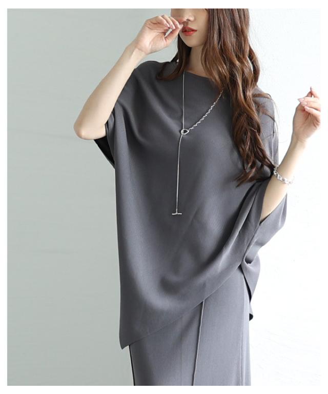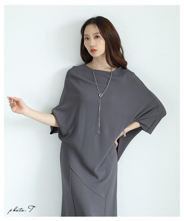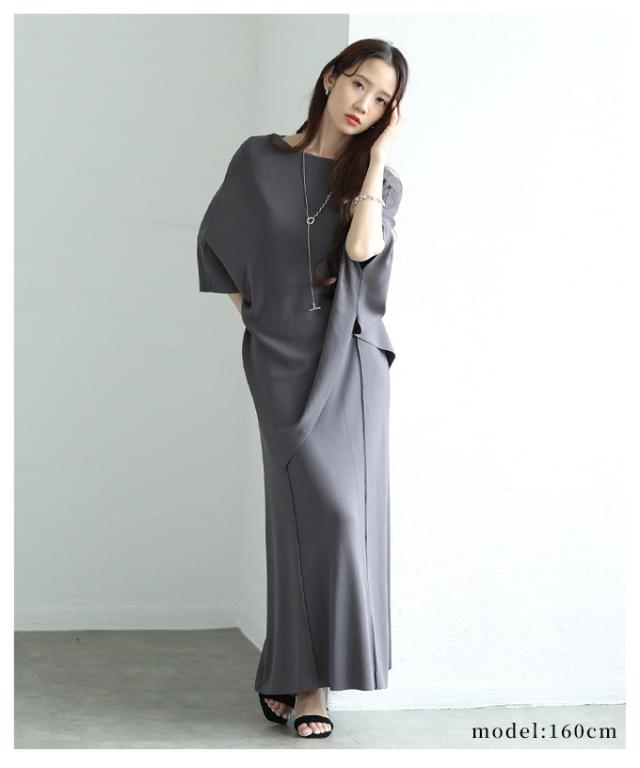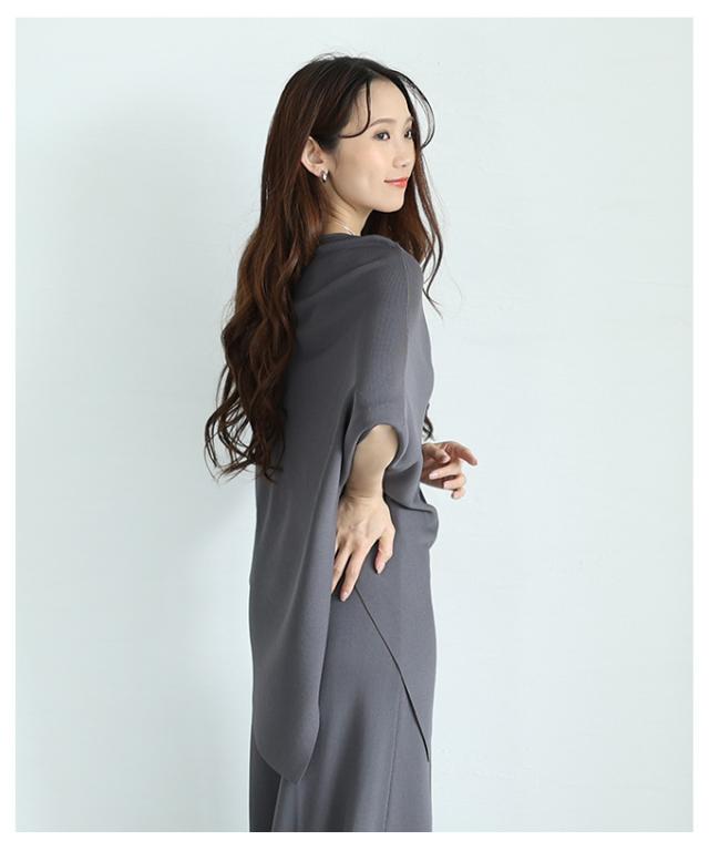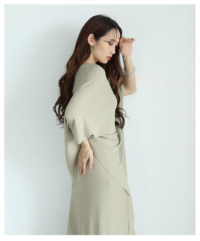 特徴: サマーニット ドルマンスリーブ アシンメトリー ウエストゴム フレア 2点 セット