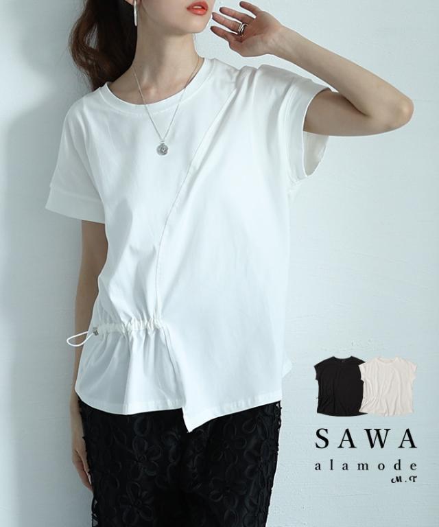 春新作 アシンメトリーな遊び心を愉しむドロストカットソー レディース ファッション トップス カットソー Tシャツ アシンメトリー ドロスト ハート 半袖 30代 40代 50代 60代 サワアラモード sawaalamode otona 大人 cawaii 可愛い 洋服 かわいい服 almy-0036