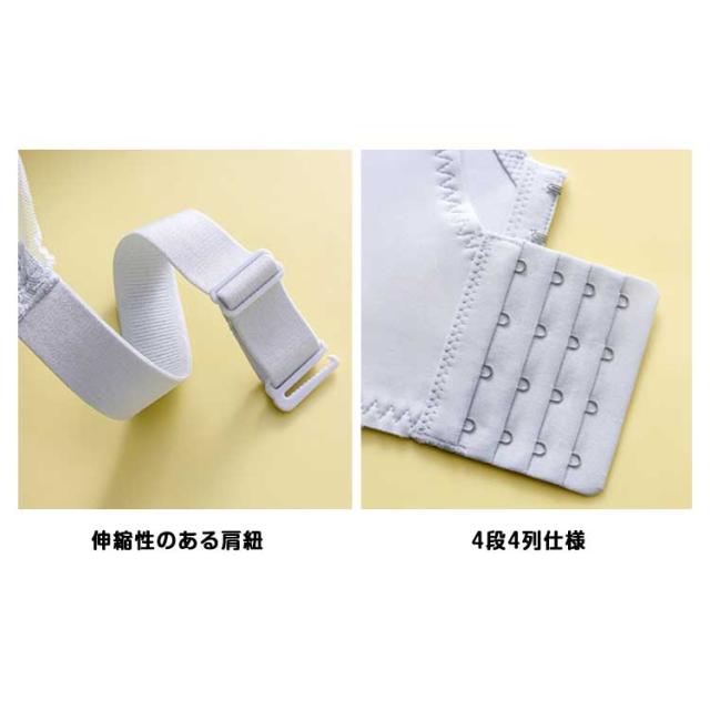 | 可愛いデザイン・薄型パッド・通気性パッド 【幅広ストラップ】:肩への接触部分を分散することで負担を軽減させます。長さの調整も可能です。 【ノンワイヤー】:締付感はなく、優しいのにしっかりとしたホールド感を実現しました。 【しっかりと固定するカップ】:快適なフィット感を実現しカップがズレにくくなっています。 【バスト細見せ】:薄型パッドでバストを支えて、しっかりホールド。大きな胸もスッキリ見せることができます。自然なシルエットを保ちながらも胸元をスッキリと見せることができます。 【通気性の良いメッシュ素材】:通気性が良く蒸れにくいメッシュ素材。 抜群の機能性で一年を通して快適に着用していただけます。 | |