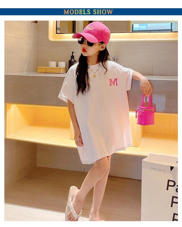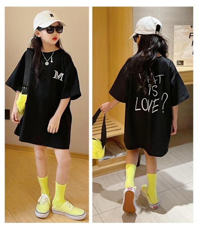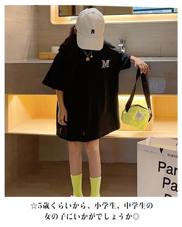 カットソー オーバーサイズ 女の子 半袖 ゆったり 夏物 tシャツ トップス キッズ ティーシャツ クルーネック ダンス服 子供服 韓国tシャツ ビックtシャツ カジュアル 小学生