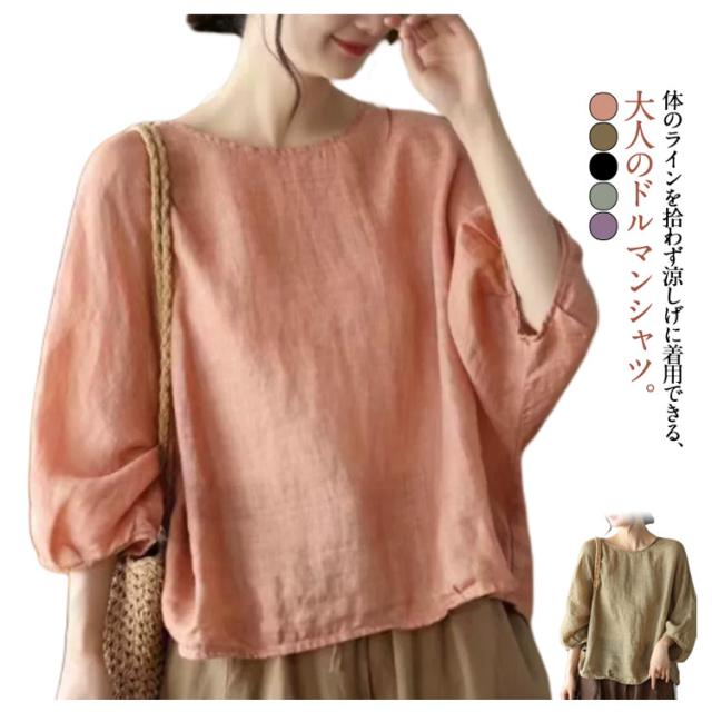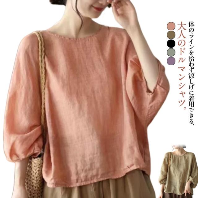 レディース 七分袖 ドルマンスリーブ 送料無料 シャツ おしゃれ ブラウス シャツブラウス プルオーバー 大人 かわいい カジュアル トップス M ゆったり 体型カバー 春夏 エレガント L XL 2XL
