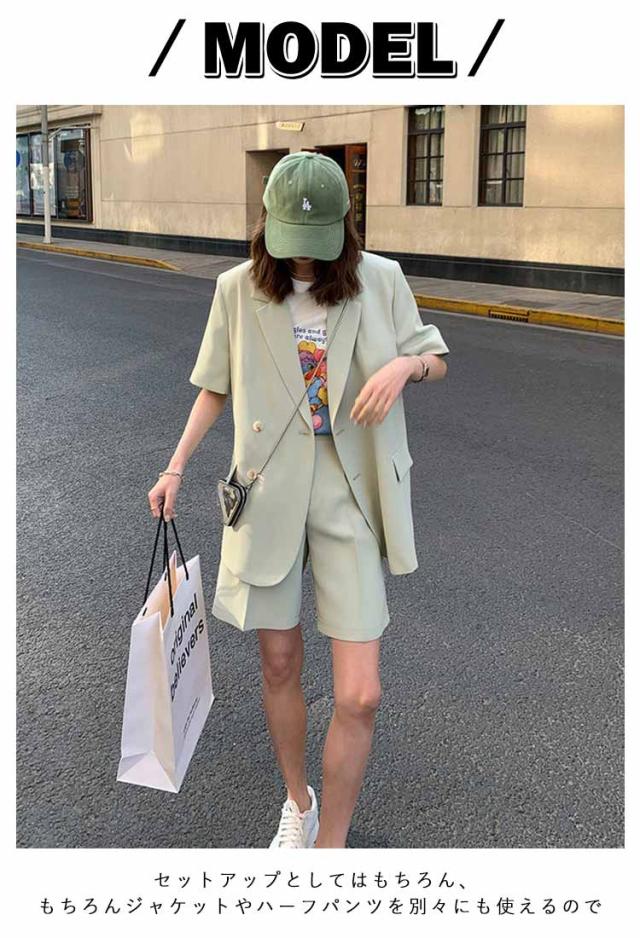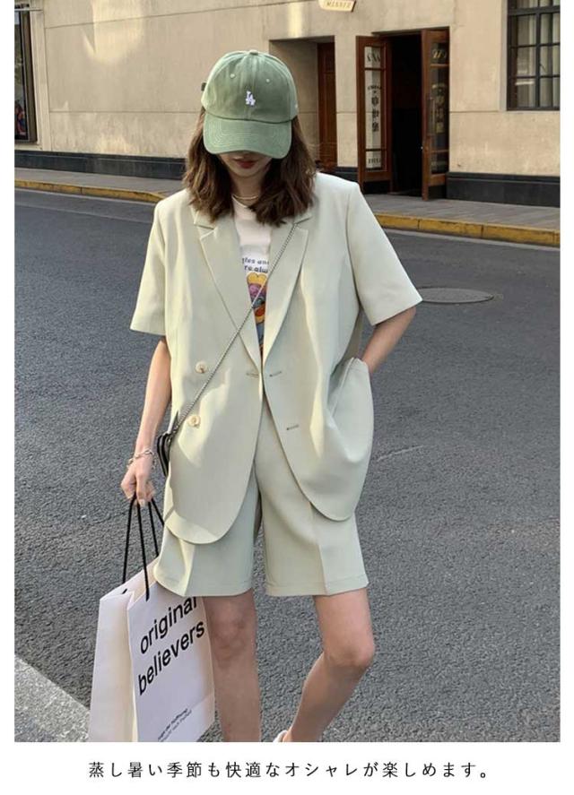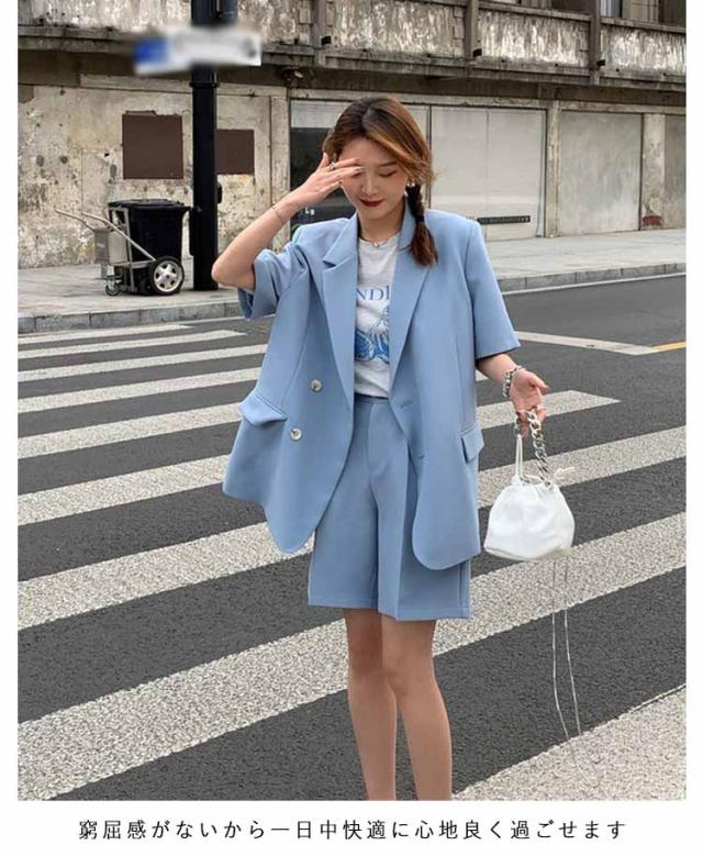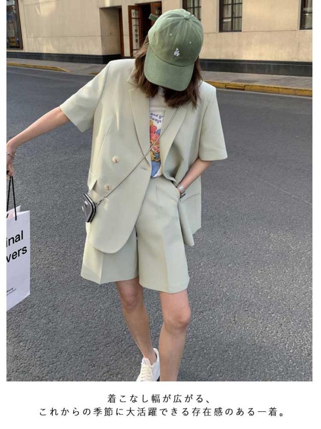 セットアップ 春 半袖ジャケット スーツ ショートパンツ セットアップ レディース アウター 短パン テーラードジャケット 上下セット ショート丈 無地 夏 セットアップ きれいめ 通勤 オフィス